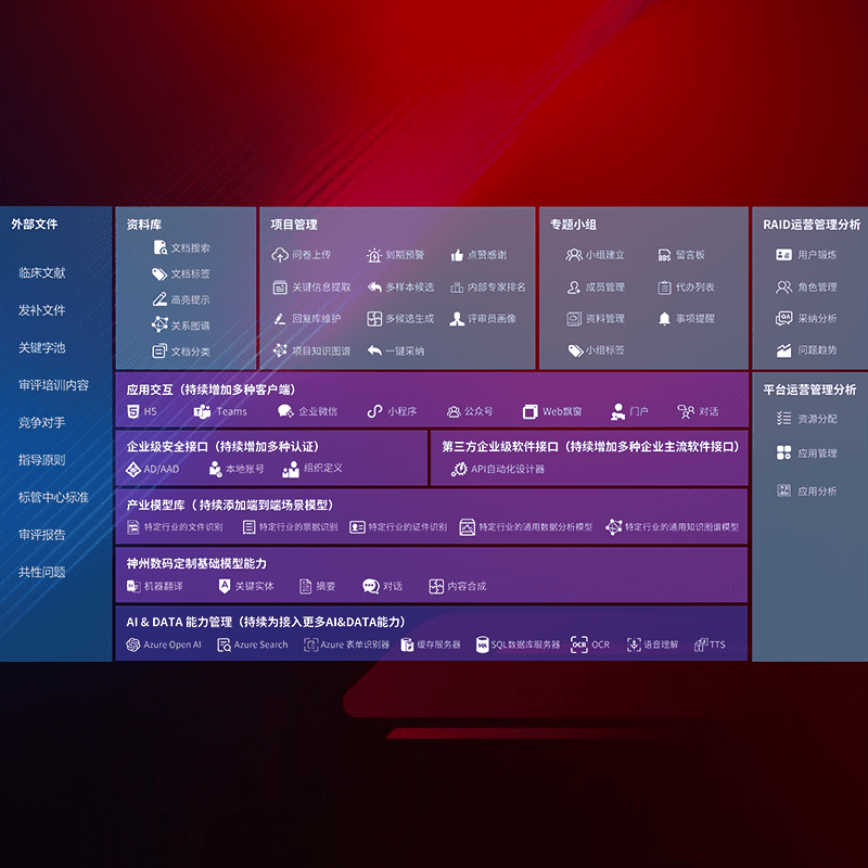 医疗器械产品上市前,,,要熟悉严格与繁复评审标准,,,,整理分析监管机构指导文件中的海量信息。。企业急需一个智能化解决方案,,,提升知识管理效率,,,提高评审通过率,,,以提升其市场竞争力。。。